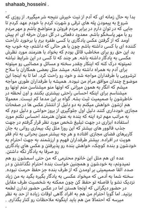 شهاب حسینی به سواستفاده یک هوادار از عکس گرفتن با او واکنش نشان داد.