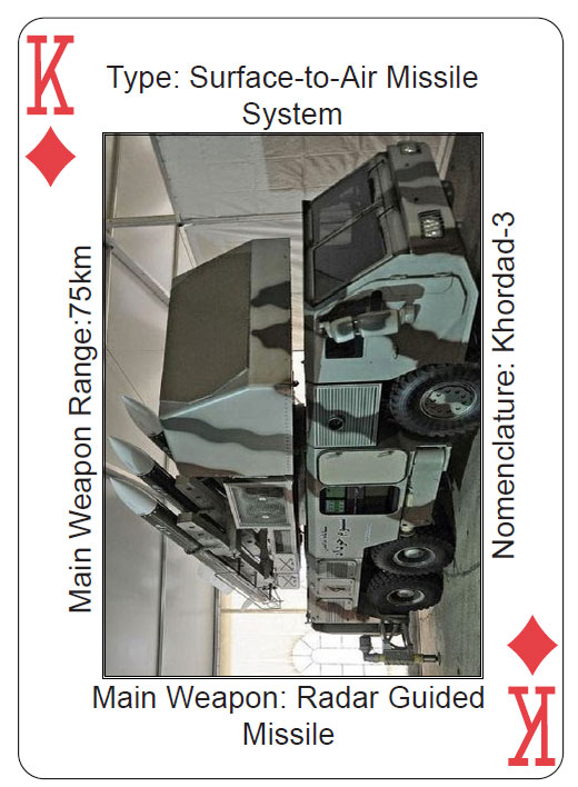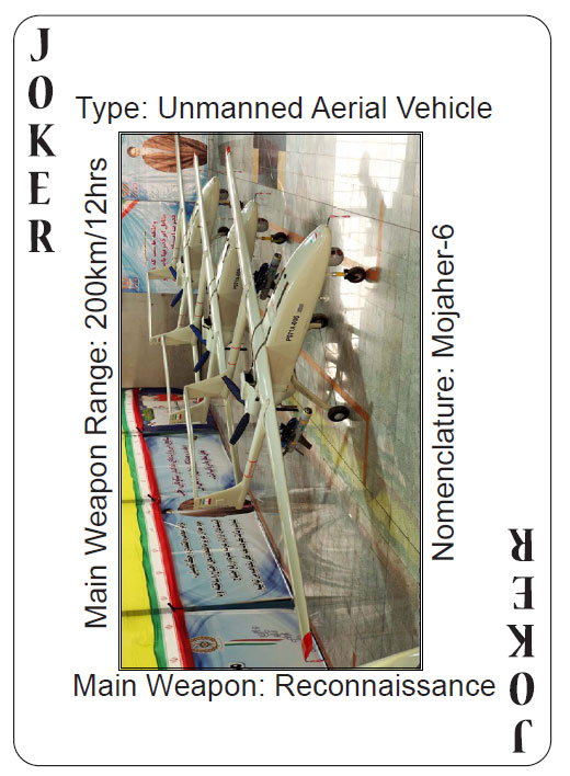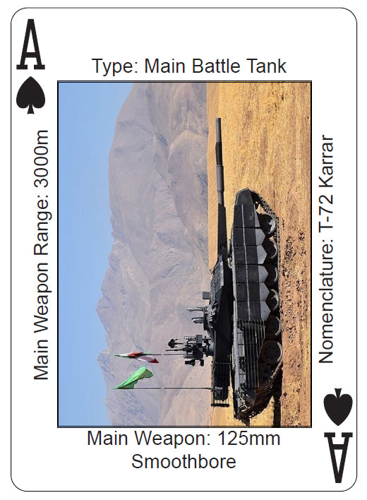 یک رسانه آمریکایی روز پنجشنبه خبر داد که دستههای پاسور و کارت بازی که تصاویر سلاحهای ایرانی با نام، ویژگیها، قابلیتها، بردها و دیگر مشخصات مرتبط روی آن نقش بسته توسط ارتش آمریکا تولید شده است. هدف از تولید این کارتهای بازی آشنا شدن سربازان آمریکایی با انبارهای سلاح ایرانی و تسهیل شناخت این سلاحها در میدان جنگ عنوان شده است.