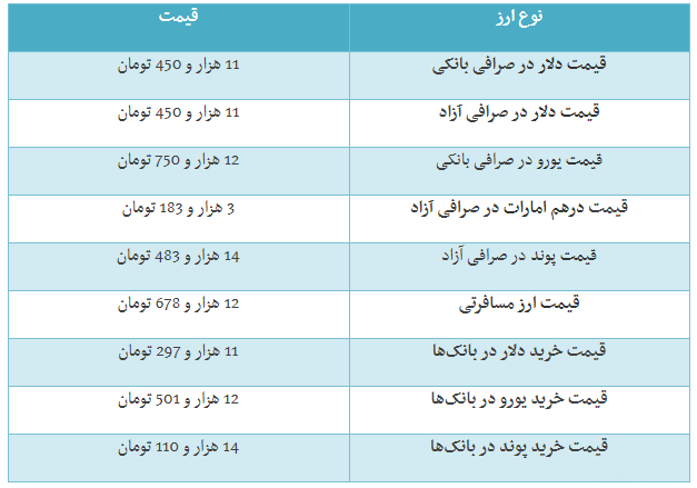 ** توجه داشته باشید که قیمتهای درجشده در این خبر برای دلار، یورو و پوند، قیمت خرید بانک از مردم است نه فروش!
