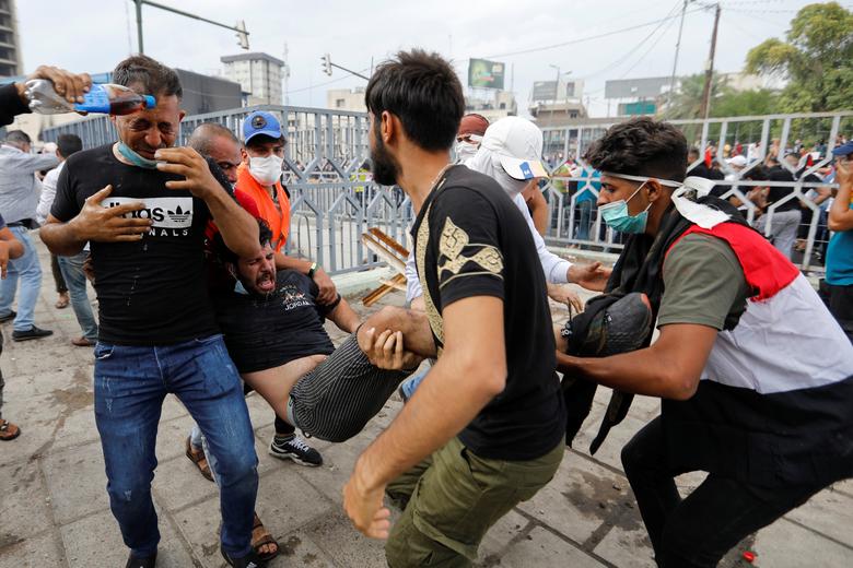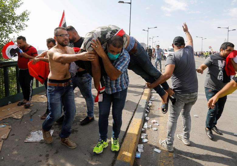 اعتراضات روز جمعه (دیروز) در بغداد. در جریان اعتراضات دیروز عراق دستکم ۳۰ نفر کشته و بیش از ۱۸۰۰ نفر زخمی شدند.