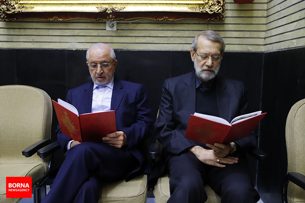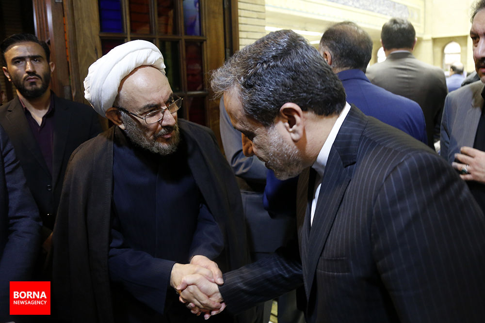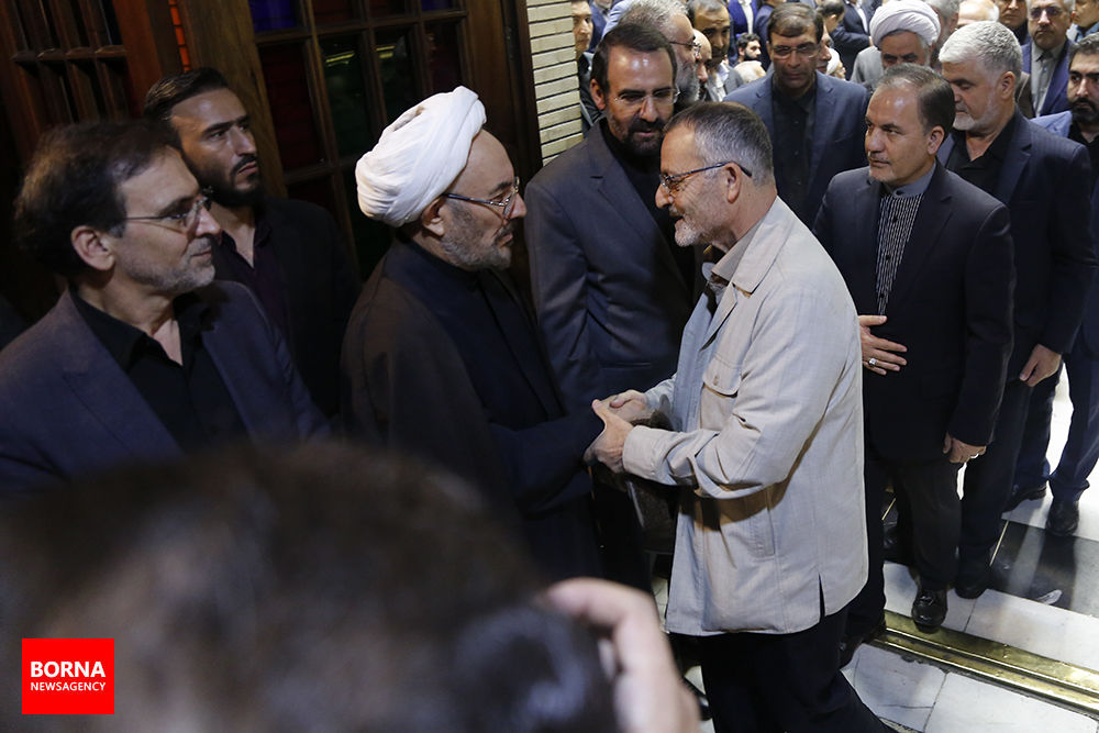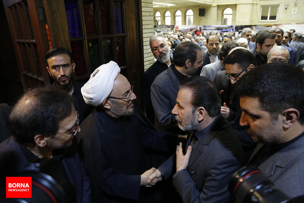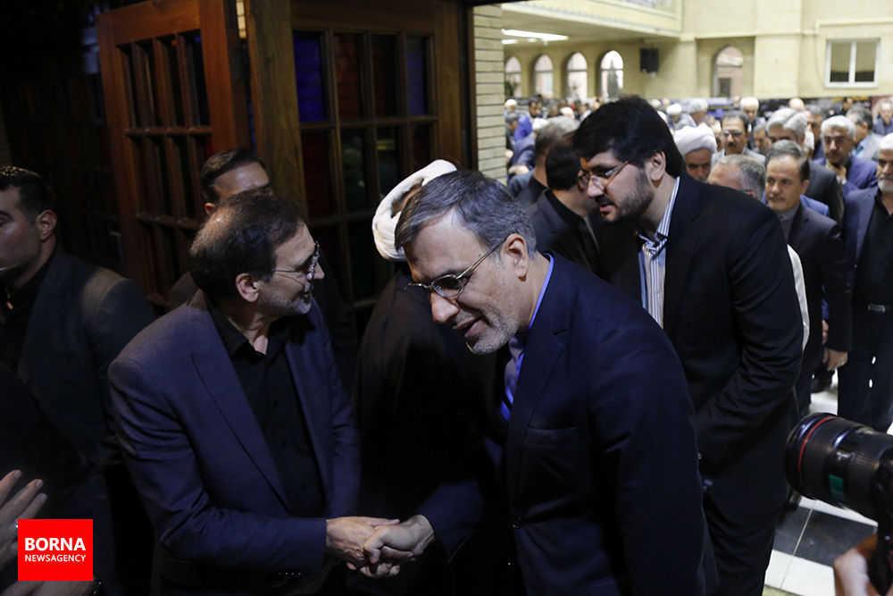 رویداد۲۴ در مراسم، علی لاریجانی رئیس مجلس شورای اسلامی، محمد جواد ظریف وزیر امور خارجه، محمود واعظی رئیس دفتر رئیس جمهور، علی جنتی وزیر اسبق ارشاد، علی اکبر ناطق نوری، عبدالله جاسبی رئیس پیشین دانشگاه آزاد اسلامی، حجت الاسلام و المسلمین سید حسن خمینی، علی اکبر صالحی رئیس سازمان انرژی اتمی، سیدعباس عراقچی معاون وزیر امورخارجه، محسن حاجی میرزایی، وزیر آموزش و پروش، محمود حجتی وزیر جهاد کشاورزی حضور دارند. حمید رضا آصفی سخنگوی پیشین وزارت امورخارجه، حجت الاسلام و المسلمین شهیدی رئیس بنیاد شهید و امور ایثارگران، حسینعلی امیری معاون پارلمانی دولت، سورنا ستاری معاون علمی و فناوری رئیس جمهور، حجت الاسلام و المسلمین سعید رضا عاملی دبیر شورای عالی انقلاب فرهنگی، محمد رضا خاتمی، حجت الاسلام مصباحی مقدم، بهروز کمالوندی، سخنگوی سازمان انرژی اتمی و. تعدادی از سفرای ایران در خارج از کشور، دیپلمات‌های ارشد وزارت امورخارجه، نمایندگان مجلس از ادیگر چهره‌های حاضر در این مراسم بودند.
