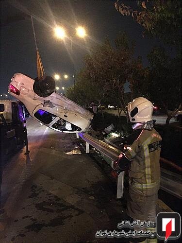 صحنه واژگونی رانا در اتوبان بابایی تهران + عکس
