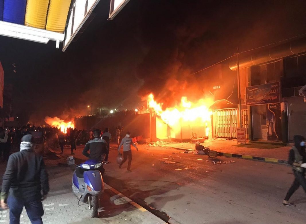 رویداد۲۴ در پی تشدید وخامت اوضاع و درگیریها در نجف اشرف، ریاست پلیس استان نجف از منع آمد و شد تا اطلاع ثانوی در این استان خبر داد. همچنین ساعتی پیش تصاویری از به آتش کشیدن کنسولگری ایران در نجف اشرف در رسانههای محلی منتشر شد.