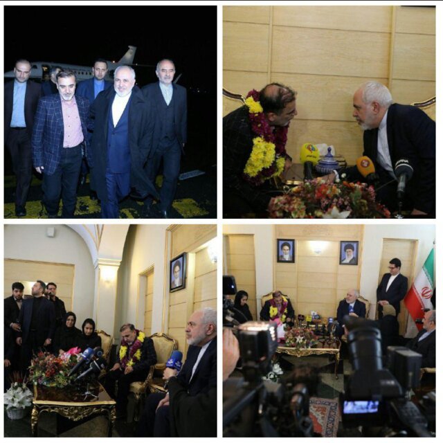 وزیر امور خارجه با بیان اینکه امروز، روز خوشی برای وزارت خارجه است، ادامه داد: امروز دکتر سلیمانی بعد از تحمل ۱۴ ماه سختی بینهایت به ایران بازگشتند؛ استادی که در طول این دوره بارها آمریکاییها به ایشان پیشنهاد داده بودند که به جای بازگشت به کشور یا در زندان ماندن بپذیرد که در این کشور بماند، ولی این استاد وطنپرست این پیشنهاد را نپذیرفتند.