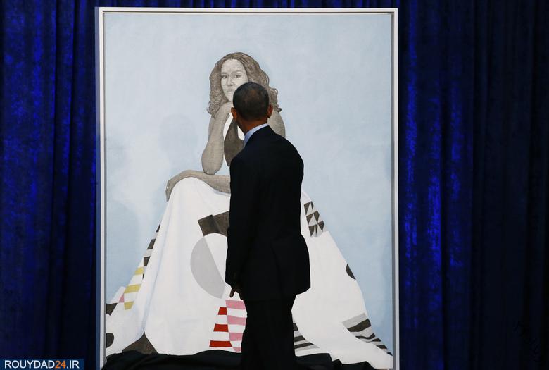 باراک اوباما در مراسم پرده برداری از پرتره خودش و همسرش