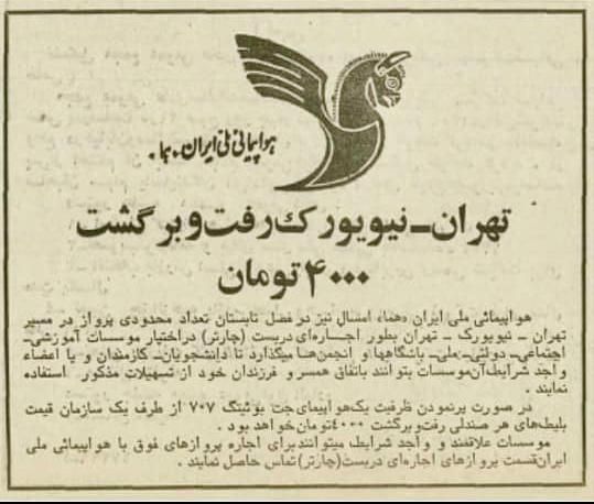 تصاویری از آگهیهای قدیمی ایران/ بلیت رفت و برگشت نیویورک ۴ هزار تومان