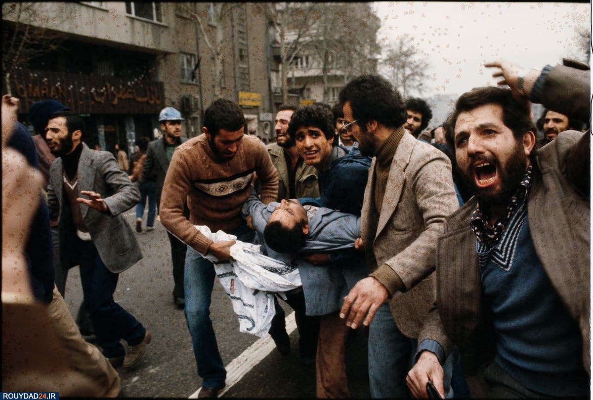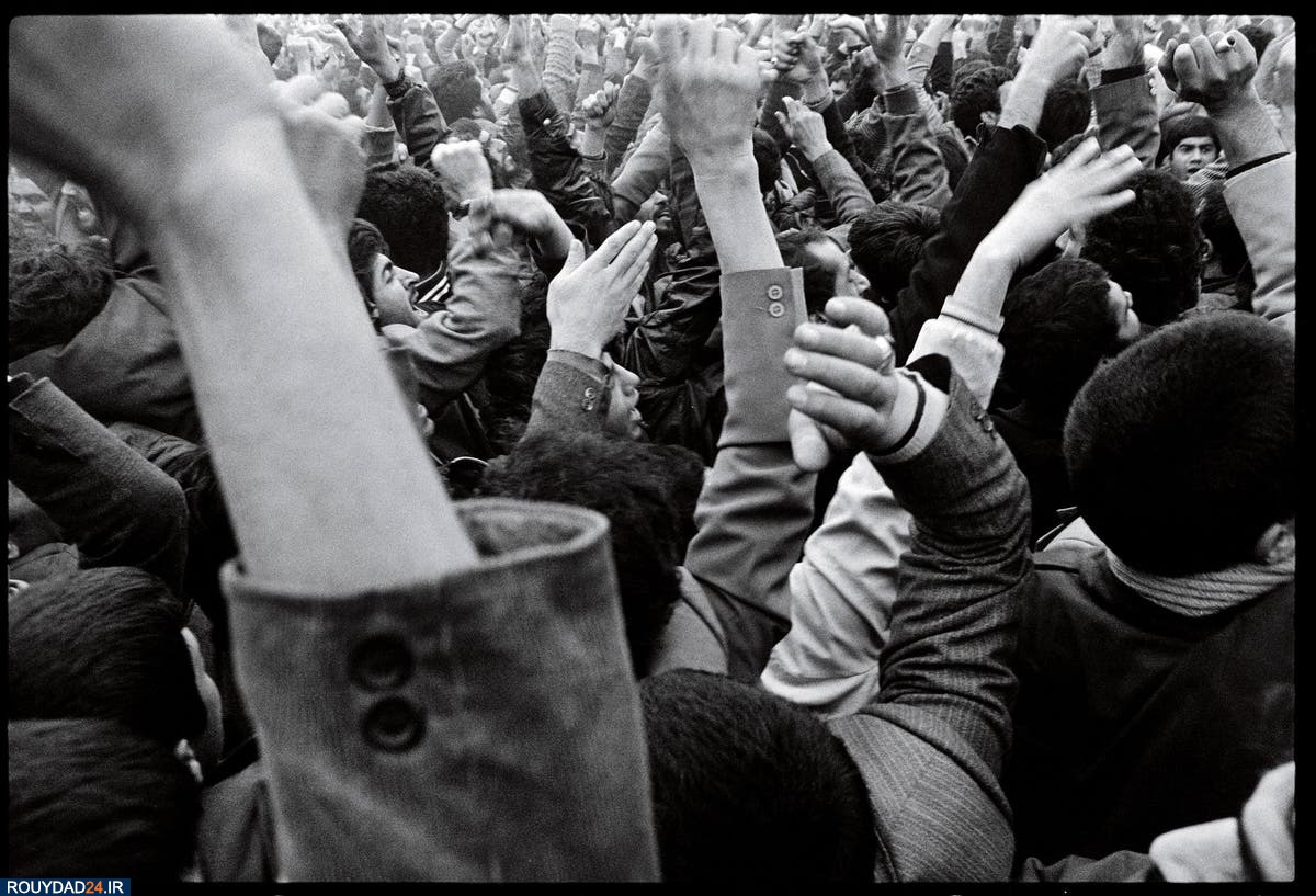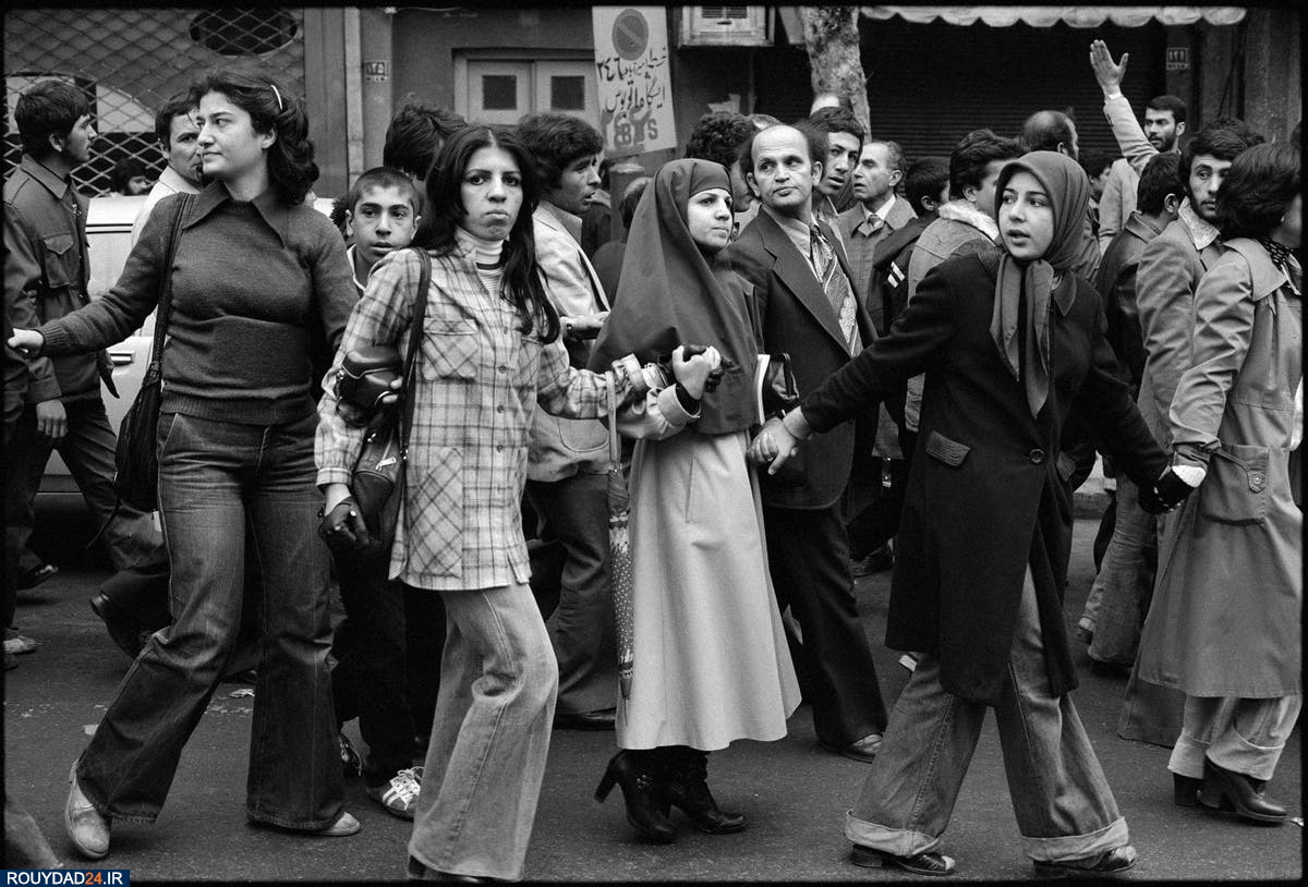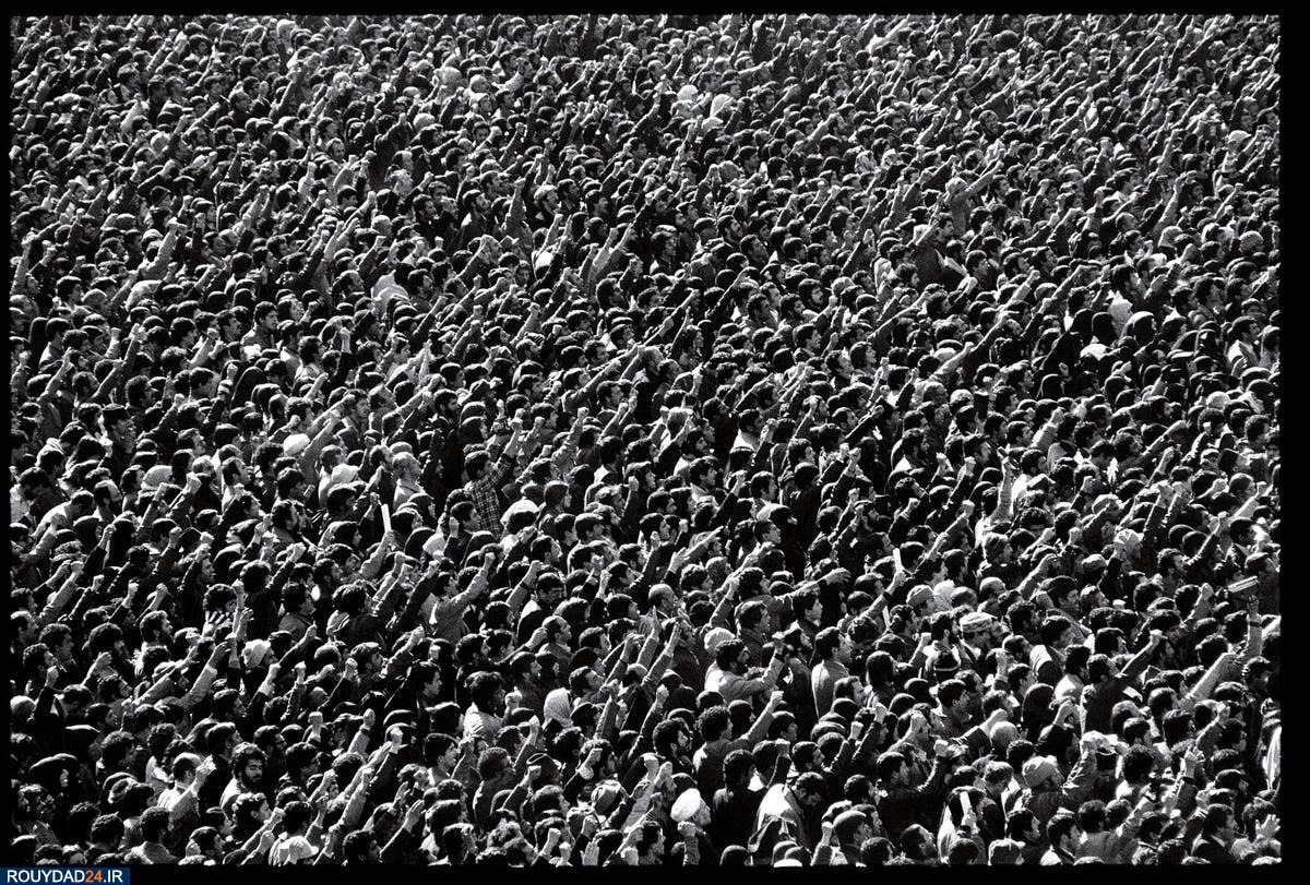 ژانویه 1979 معترضان علیه رژیم محمدرضاشاه پهلوی روبروی دانشگاه تهران