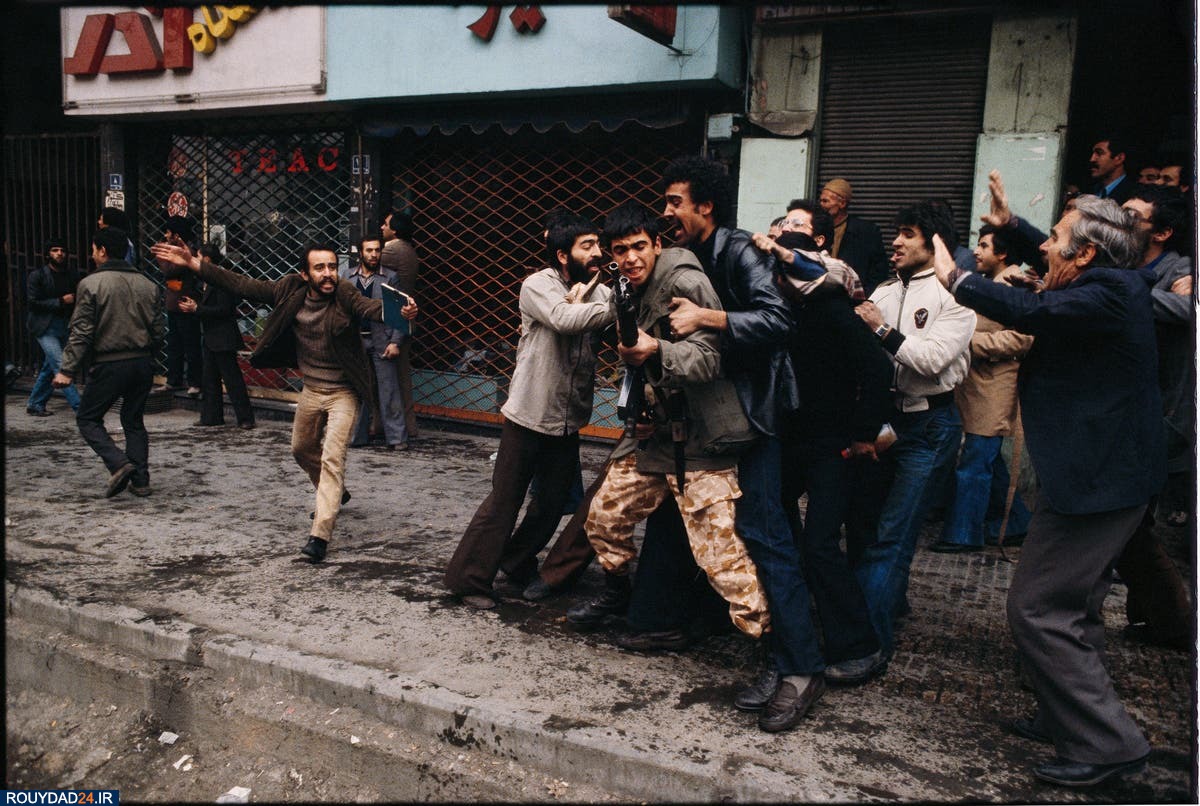 معترضان ایرانی بدون ماسک و اسلحه در پی سقوط حکومت پهلوی و بنیان گذاشتن جمهوری اسلامی