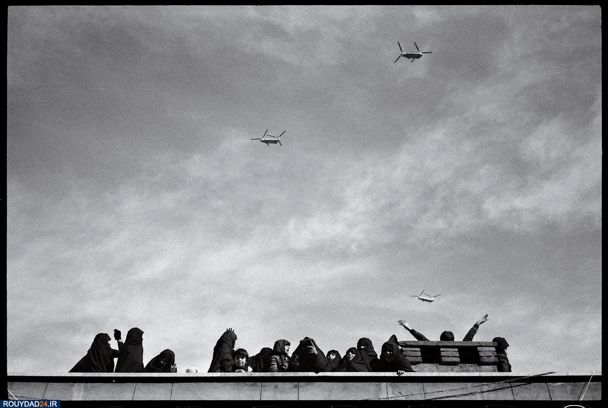 پرواز هلیکوپترهای ارتش در آسمان پایتخت در حالیکه مردم منتظر بازگشت آیت الله خمینی هستند