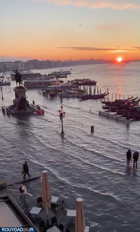 پیادهروی گردشگران در کنار سیلاب میدان سن مارکو