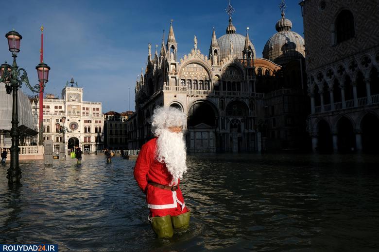 بابانوئل در میدان سن مارکو درسیلاب ونیز