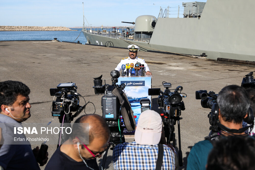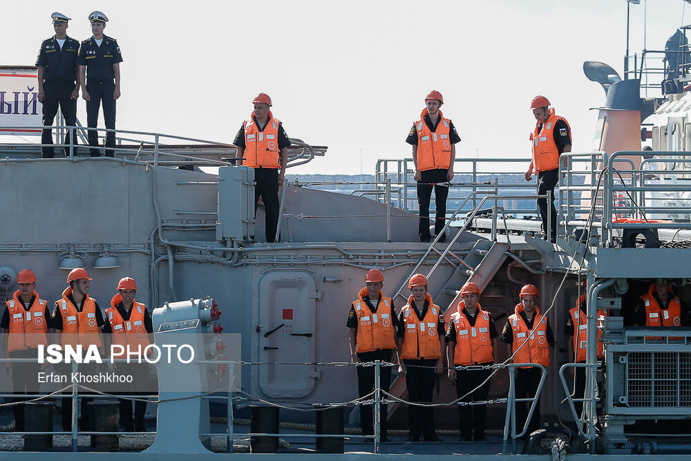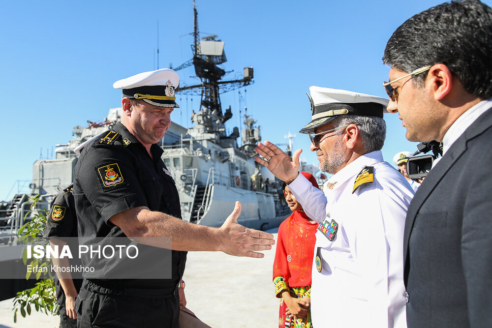 آیین استقبال از شناور‌های کشور‌های روسیه و چین برای شرکت در رزمایش مشترک سه‌جانبه، جمعه ۶ دیماه با حضور امیر دریادار دوم غلامرضا طحانی معاون عملیات نیروی دریایی ارتش و امیر دریادار دوم مصطفی تاج‌الدینی فرمانده منطقه سوم دریایی نبوت در اسکله شهید بهشتی بندر چابهار برگزار شد. عکاس: عرفان خوشخو