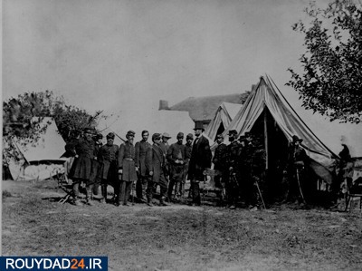 اکتبر 1862 ، آبراهام لینکلن و جورج مک لیلان (سردار نیروهای شمالی) در نهر (انتی تام) (در ایالت مریلند ـ محل یکی از نبردهای سرنوشت ساز جنگهای داخلی آمریکا ـ 1862)
