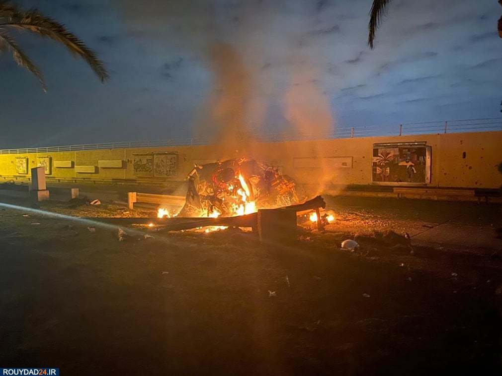 اتومبیل سوخته حامل سردار سلیمانی