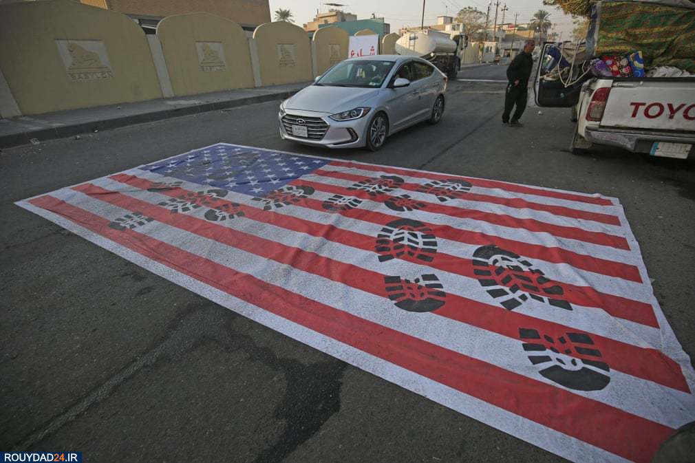 پرچم آمریکا در بغداد روی زمین