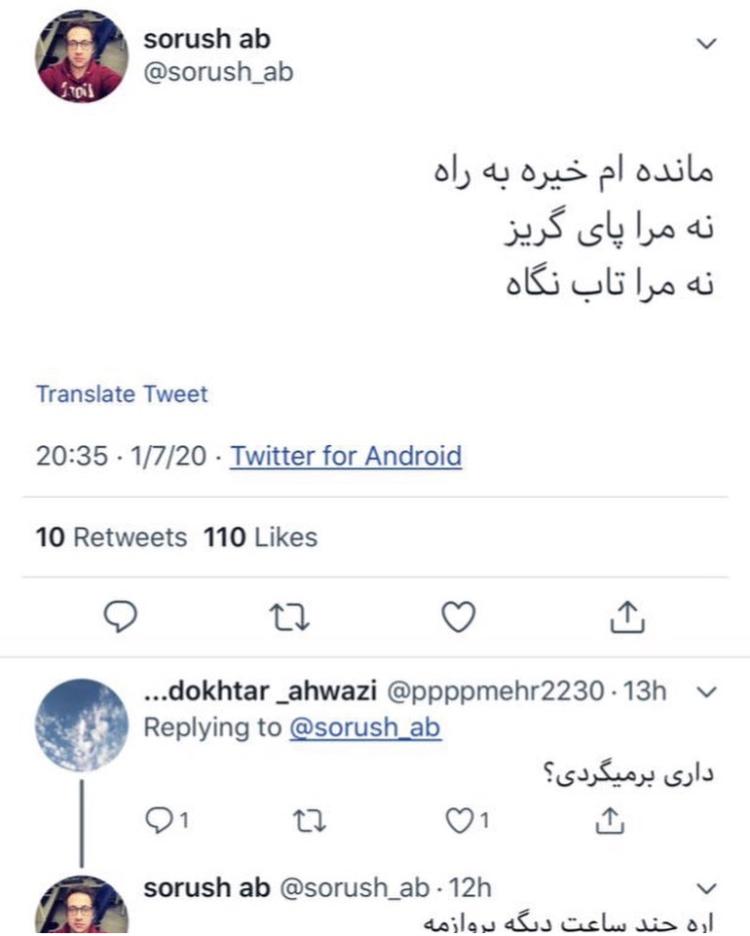 توییت یکی از مسافران ایرانی هواپیمای اوکراینی قبل از سقوط