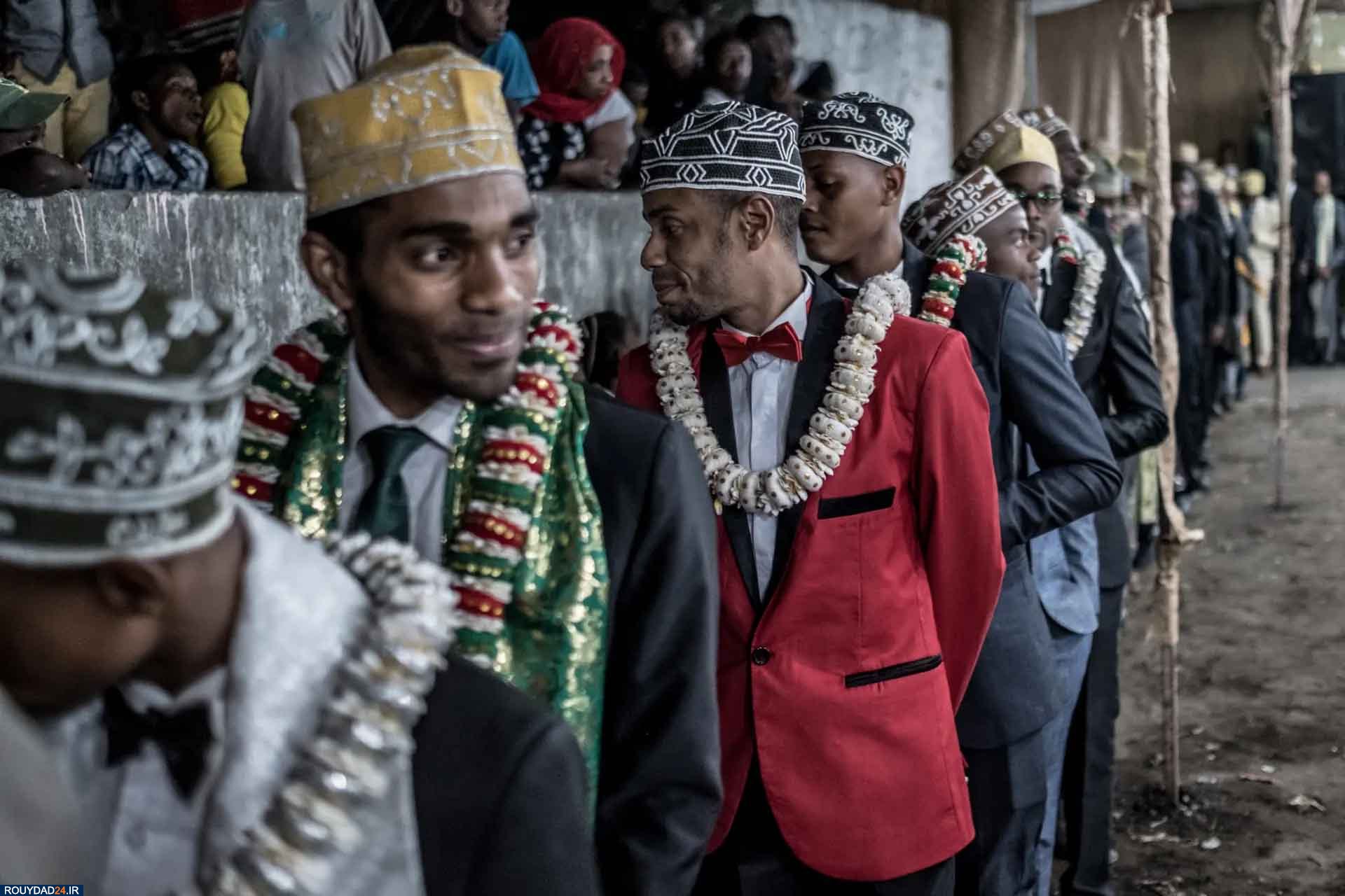 مجمع الجزایر کومور کشوری آفریقایی است واقع در اقیانوس هند که در ۱۹۰ مایلی شرق ساحل موزامبیک و شمال غربی ماداگاسکار قرار دارد و متوسط درآمد سالانه در آن ۱۲۰۰ دلار است. در تصاویر روز، عکس‌هایی از رقص و پایکوبی عروسی سنتی مردم کومور را ببینید. مجموعه‌ای از آداب و رسوم سنتی مراسم این جشن عروسی دو هفته برپاست و ده‌ها هزار دلار برای این مراسم خرج می‌شود. برگزاری مراسم عروسی موجب رونق کسب و کار در کومور شده است. بسیاری از خانواده‌ها هنگام شرکت در عروسی طلا و جواهرات دست‌ساز به عروس و داماد هدیه می‌دهند و از این رو شغل جواهرسازی در کومور رونق زیادی دارد.