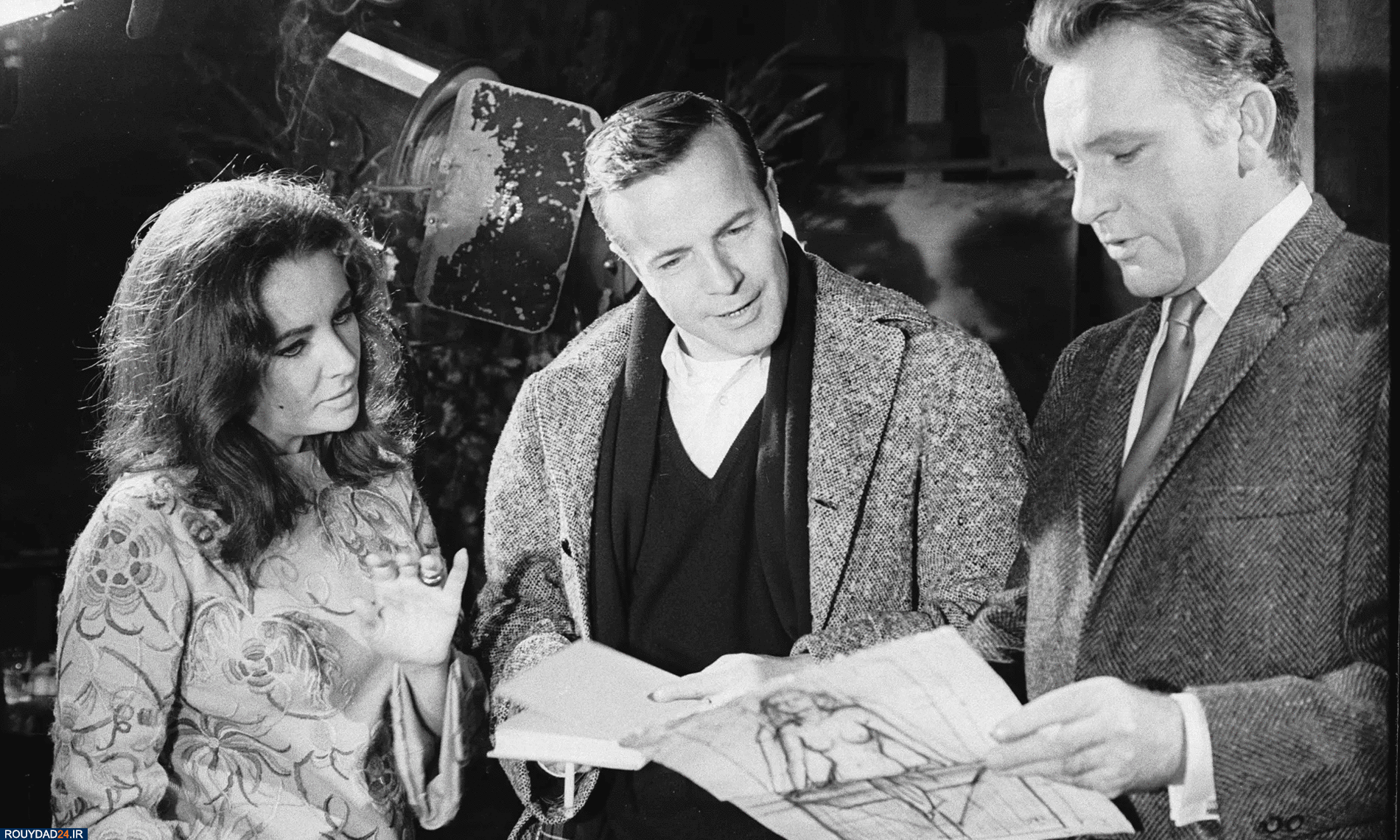 ریچارد برتن، فرانکو زفیرلی و الیزابت تیلور در پشت صحنه فیلم "رام کردن زن سرکش"