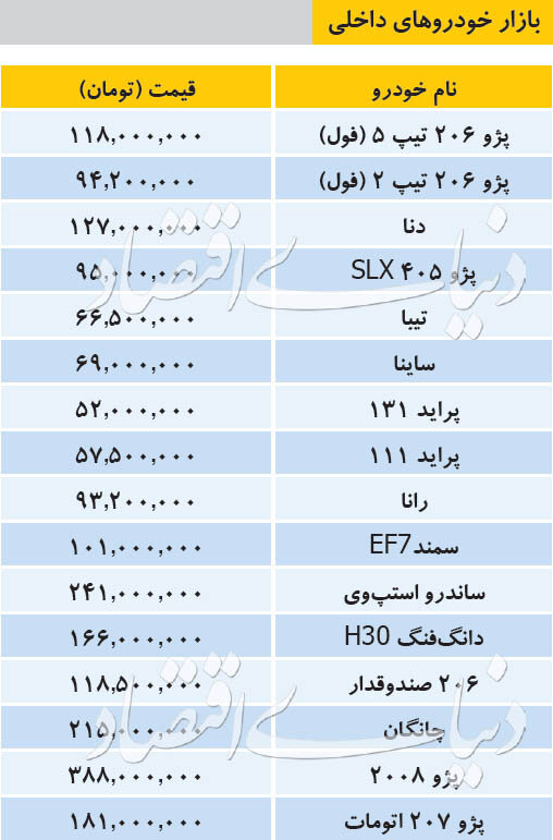 قیمت خودرو‌های داخلی و وارداتی ۱۳۹۸/۱۱/۱۲