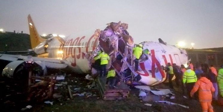 تصاویر منتشرشده نشان میدهد این هواپیما که متعلق به خطوط هوایی «پگاسوس» ترکیه است در پی این حادثه دچار آسیب جدی شده است.