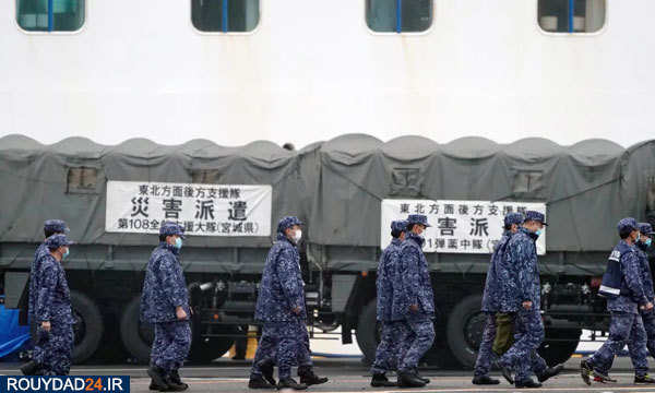 نیروهای امنیتی برای خارج کردن افراد به خاطر ویروس کرونا به سمت کشتی «شاهزاده الماس» حرکت میکنند