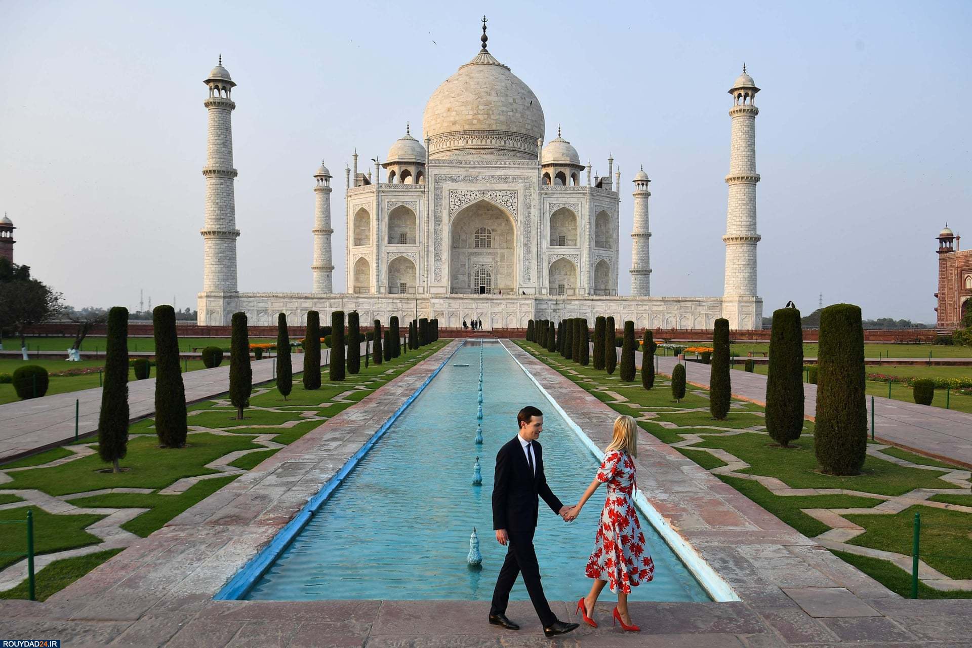 ایوانکا ترامپ (دختر دونالد ترامپ) و همسرش جرد کوشنر ۲۴ فوریه ۲۰۲۰ در تاجمحل