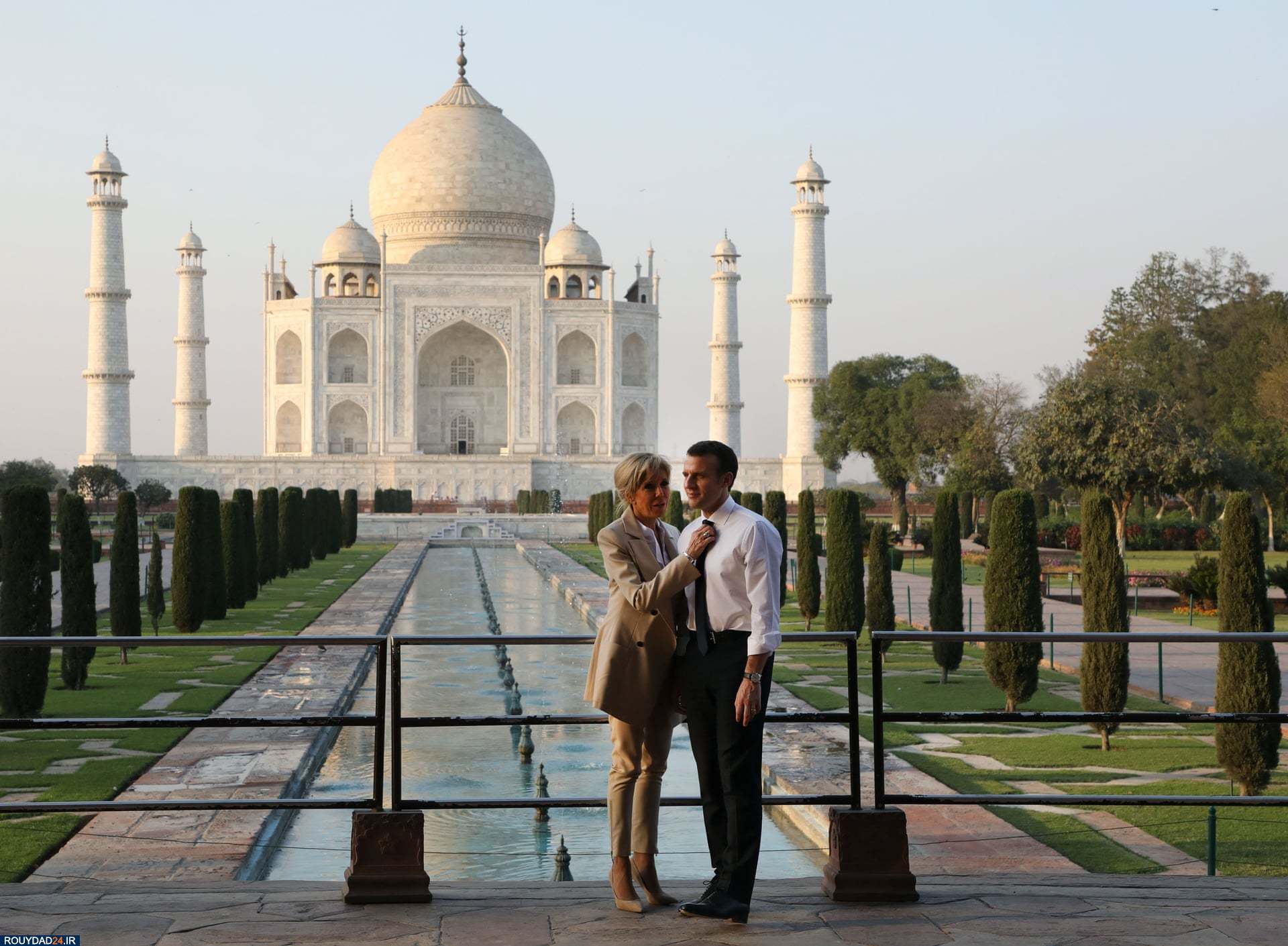 امانوئل مکرون و همسرش بریژیت مکرون، مارس ۲۰۱۸ در تاجمحل