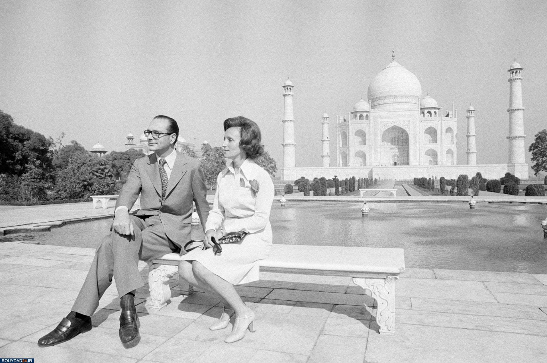 ژاک شیراک، رئیس جمهور پیشین فرانسه و همسرش برنادت، ژانویه سال ۱۹۷۹ در تاجمحل