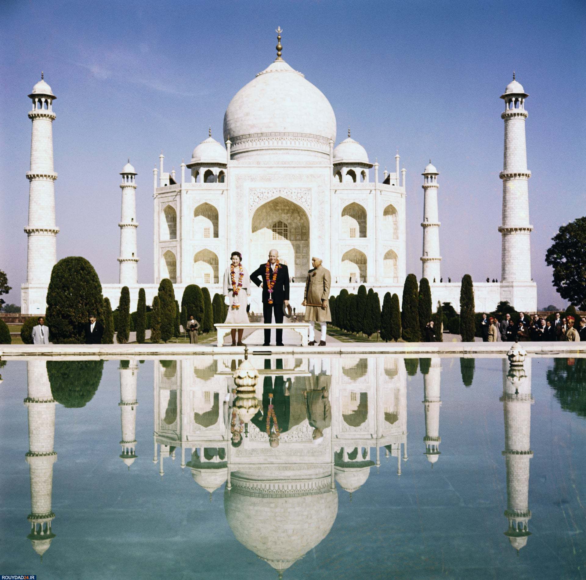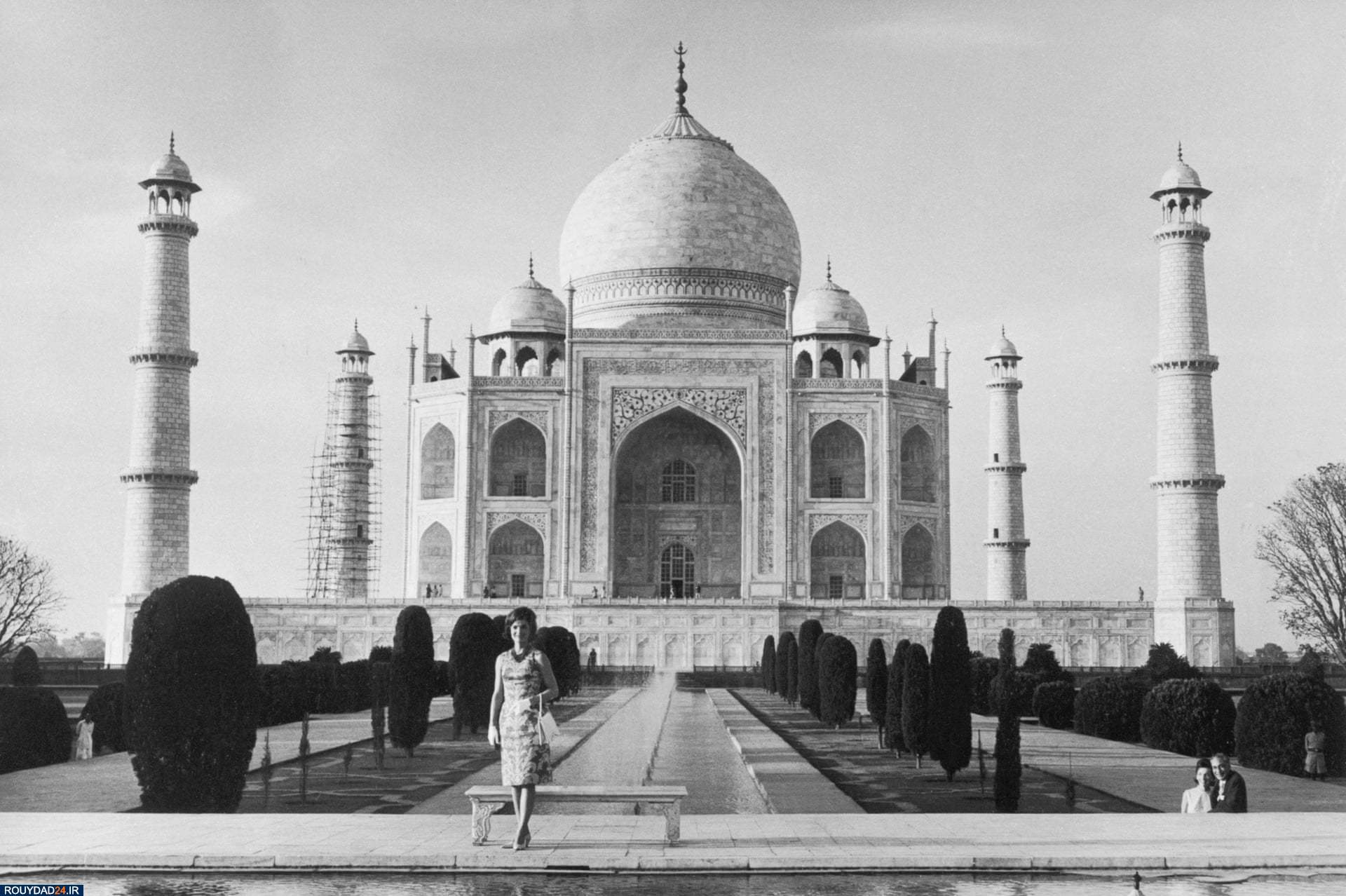 ژاکلین کندی همسر رئیسجمهور جان اف. کندی سال ۱۹۶۲ در تاجمحل