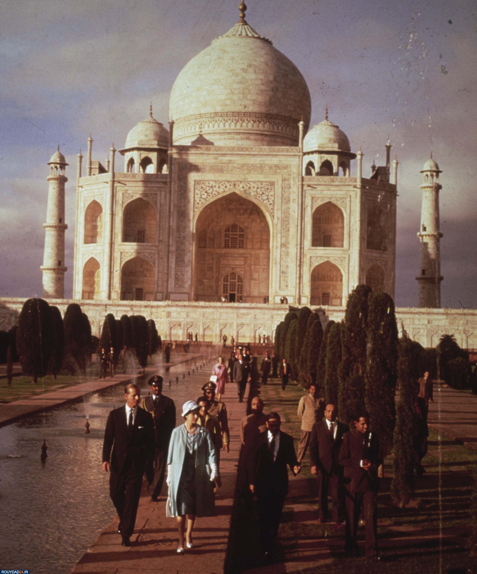 شاهزاده فیلیپ، دوک ادینبرا و همسرش ملکه الیزابت دوم، ژانویه ۱۹۶۱ در تاجمحل