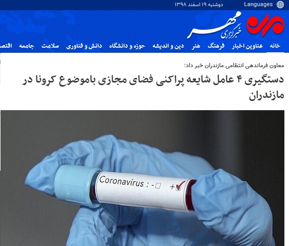 اولین بار ابتلای افراد به کرونا پس از بیمار شدن برادر دکتر مولایی عضو شورای مرکزی انجمن اسلامی جامعه پزشکی و اصرار او که موجب شد شب انتخابات مجلس، سرانجام این مسئله در رسانههای ملی منعکس شود. با این حال همان زمان مصاحبههای مختلفی از دادستانها و فرماندهان نیروی انتظامی در شهرهای مختلف منتشر شد که میگفتند افرادی را به اتهام شایعهپراکنی شیوع کرونا در ایران بازداشت کردند.