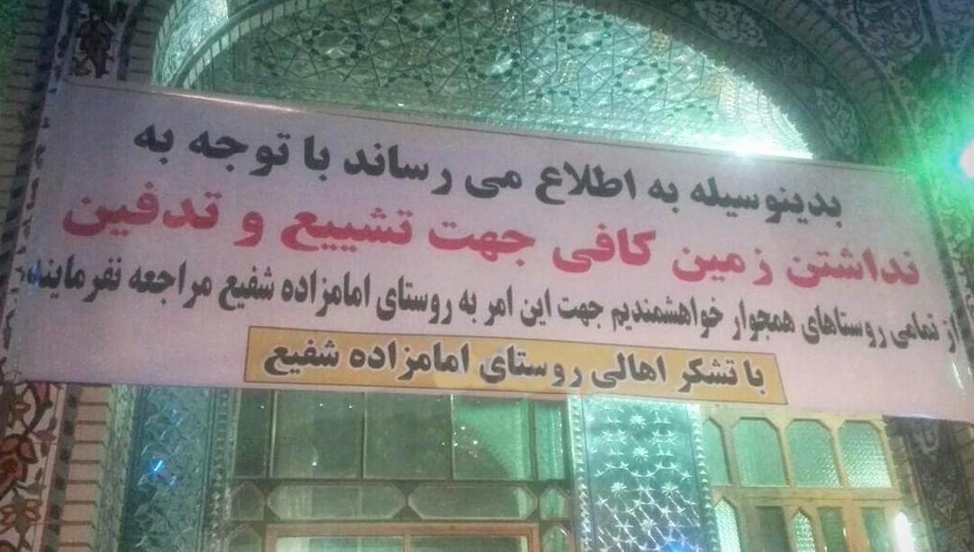 در برخی از مناطق شمالی کشور، قبرستانها برای دفن جا ندارند. صبح امروز تصویری از ورودی یکی از امامزادههای کشور منتشر شد که بر آن نوشته شده بود این امامزاده زمین کافی برای دفن ندارد.