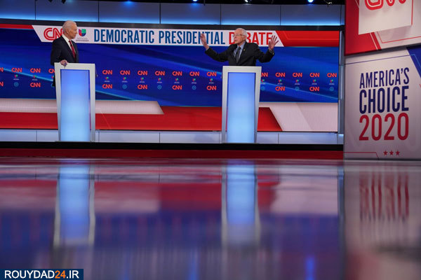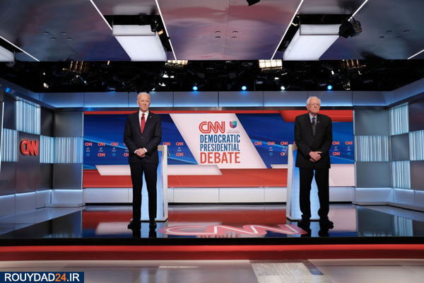 جو بایدن و برنی سندرز دو نامزد ریاست جمهوری آمریکا در اولین مناظره رو در روی انتخابات درون حزبی، بدلیل نگرانیهای ناشی از شیوع ویروس کرونا گفتگو را بدون تماشاگر در استودیو شبکه سیانان برگزار کردند