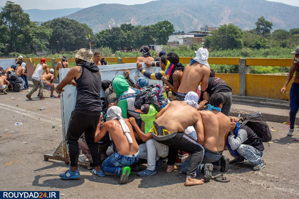 درگیری مخالفان نیکلاس مادورو، رئیس جمهور کشور ونزوئلا و نیروهای پلیس ملی، روی پلی در شهر کوکوتا کشور کلمبیا در ۲۳ فوریه ۲۰۱۹ میلادی