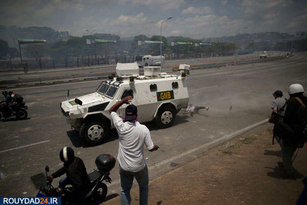 اعتراضات ۳۰ آپریل در شهر کاراکاس پایتحت کشور ونزوئلا _ درگیری معترضان با ماموران گارد ملی ونزوئلا. اعتراضات ۲۰۱۹ ونزوئلا، مجموعهای از اعتراضات است که از ۱۱ ژانویه در یک تلاش هماهنگ برای حذف نیکلاس مادورو از ریاستجمهوری که بهطور گسترده مورد انتقاد دومین دوره ریاست جمهوریاش قرار گرفت به بحران ریاستجمهوری ونزوئلا (۲۰۱۹) در این کشور منجر شد. این اعتراضات همچنین شامل ضد تظاهرات دولتی است که بهطور سازمانیافته در حمایت از مادورو در خیابانها صورت گرفتهاست