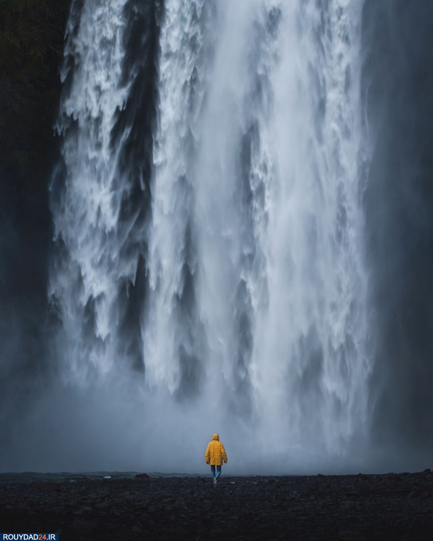 "پرواز غروب آفتاب بر فراز آّشار خدایان" عکاس ایسلندی