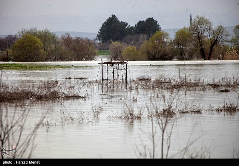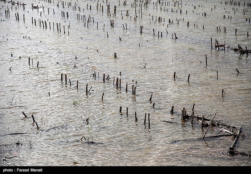 آبگرفتگی زمینهای کشاورزی در اثر سیل در کرمانشاه