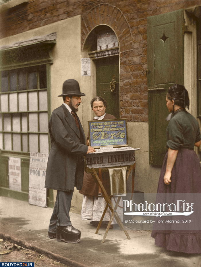 در نیمه دوم سده‌ی نوزدهم، در پی توجه شخصیت‌هایی مثل چارلز دیکنز نویسنده‌ی انگلیسی دوران انقلاب صنعتی و همچون دکتر برنارد شاو (موسس خانه کودکان تهیدست) به فقر و مشکلات اجتماعی ناشی از پیامدهای انقلاب صنعتی علاقه‌ی عکاسان به بازنمایی فقر شهری و شرایط اجتماعی،‌ در حال افزایش بود. از این رو، در سال ۱۸۷۶‌، جان تامسون، عکاس اسکاتلندی و آدولف اسمیت، روزنامه‌نگار تندرو و اصلاح‌طلب اجتماعی، ‌کتاب زندگی خیابانی در لندن را منتشر می‌کنند. کتاب شامل عکس‌های خیابانی‏ جان تامسون از مردان و زنان رنجور و مستمند و مصاحبه‌هایی با آنها بود و نخستین کتاب درر زمینه‌ی عکاسی خیابانی به شمار می‌رود. گل‌فروشان، دودکش‌پاکن‌ها، واکس‌زن‌ها، نوازندگان خیابانی، نظافت‌چی‌ها و قفل‌سازان از موضوعات اصلی او بودند. جان تامسون مجله ماهانه " زندگی خیابان در لندن " را از سال 1876 تا 1877 منتشر کرد. در این مجموعه تصاویر زندگی خیابانی مردم بومی لندن در سال 1870 را به تصویر می‌کشد.