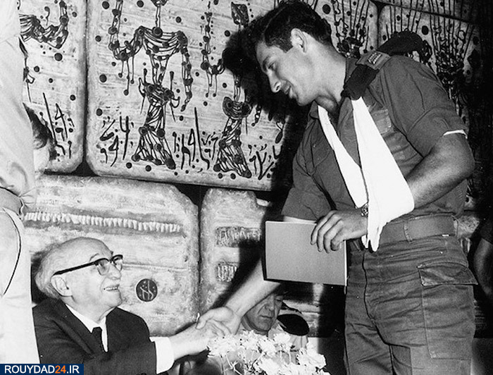 بنیامین «بیبی» نتانیاهو، نخست وزیر کنونی اسرائیل، در حال دست دلدن به زالمان شائزیر رئیس جمهور اسرائیل