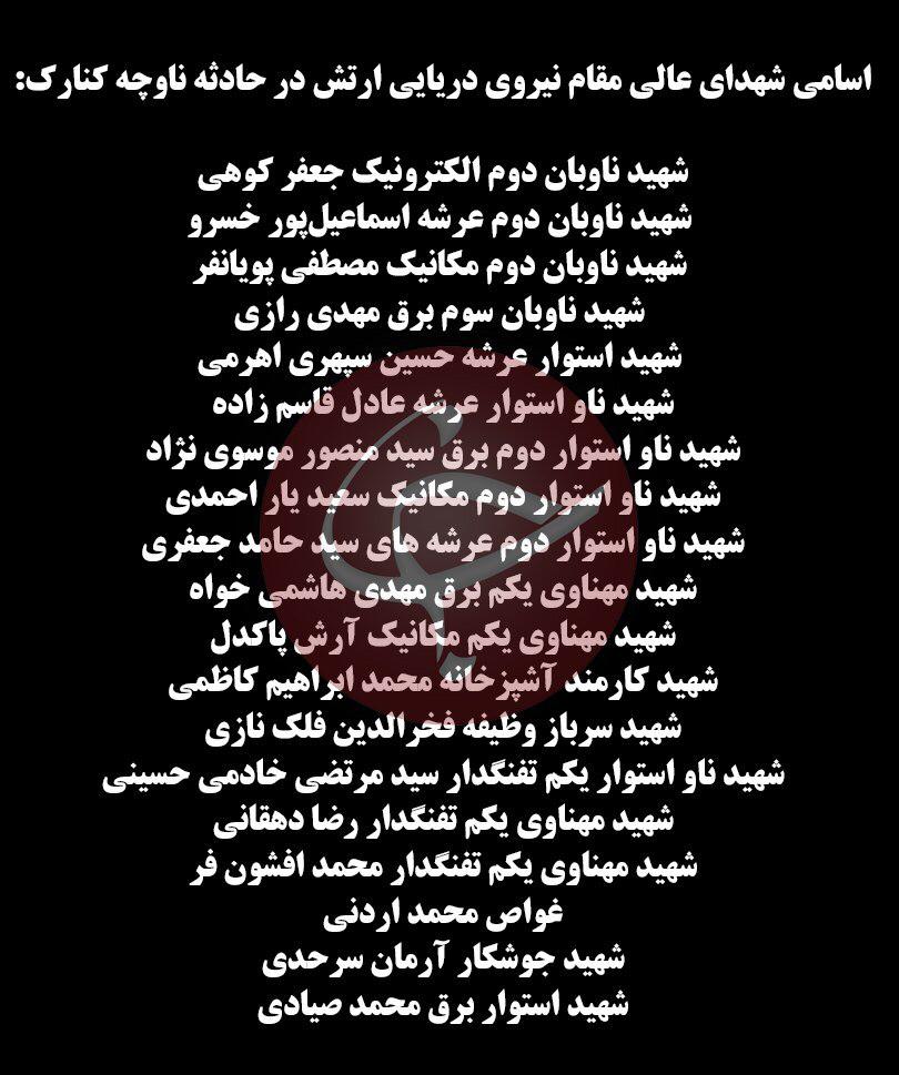 شب گذشته در رزمایش نیروی دریایی ارتش، ناو جماران به اشتباه موشکی به ناوچه کنارک شلیک کرد که در این حادثه 17 تن از خدمه این ناوجه به شهادت رسیدند و 15 نفر دیگر در بیمارستان تحت نظر پزشکان قرار دارند.