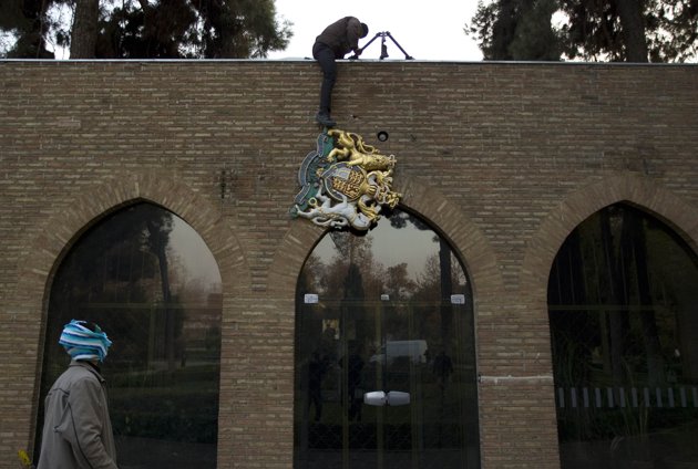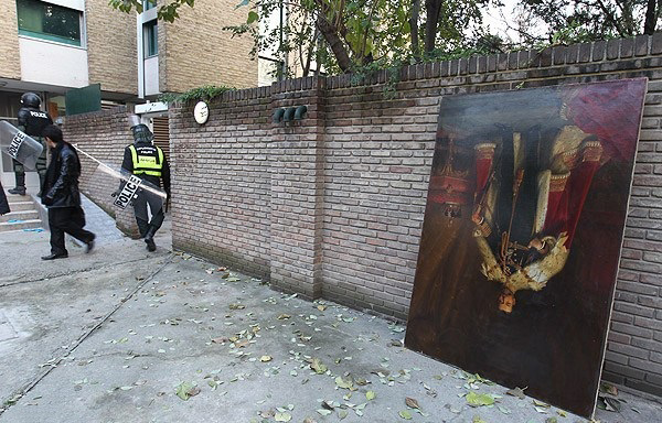 پرتره جرج پنجم گوشه دیوار سفارت انگستان بعد از حمله