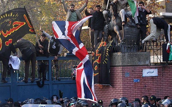 به گزارش رویداد۲۴ در آذر ۱۳۹۰ (سال ۲۰۱۱) دانشجویان بسیجی در اعتراض به آنچه «عدم اجرای طرح مجلس در کاهش روابط با انگلیس» میخواندند به سفارت انگلیس در تهران حمله کردند و پرچم این کشور را پایین کشیده و ۶ کارمند باغ سفارت بریتانیا در قلهک را به گروگان گرفتند. این گروگانگیری چند ساعت پیشتر طول نکشید، اما تبعات این اقدام نیروهای خودسر همچنان دامن نظام را گرفته است.