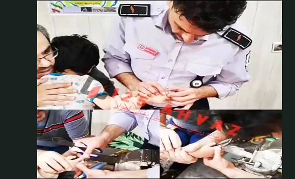 انگشت دختر بچه ۴ ساله از شی حلقوی برنده خارج شد.