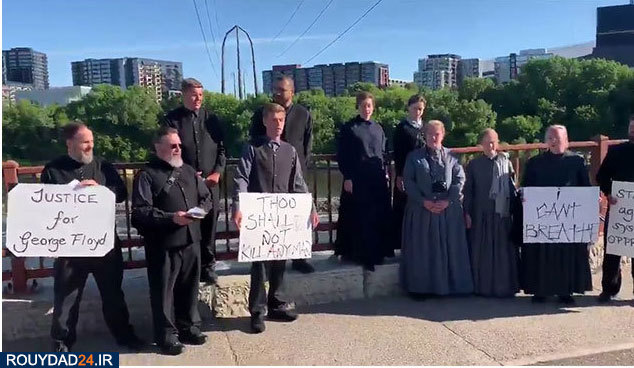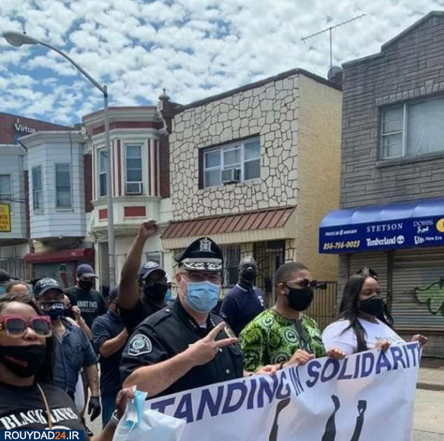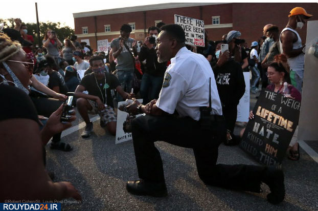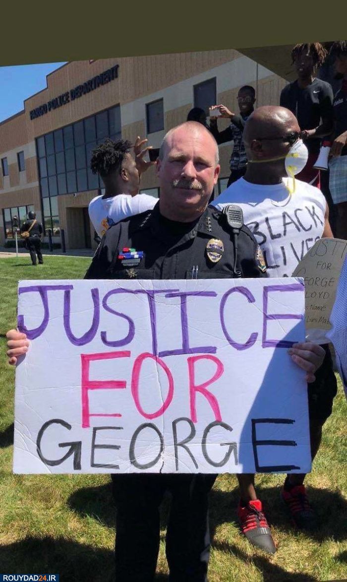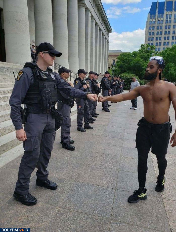 رابطه دوستانه پلیس و یک معترض به کشتن جورج فلوید . این صحنهایست که رسانههای آمریکا آن را نشان نمیدهند