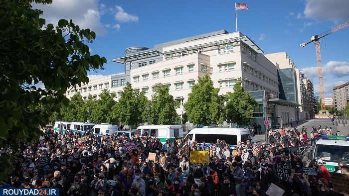تجمع معترضان در مقابل سفارت آمریکا در برلین آلمان