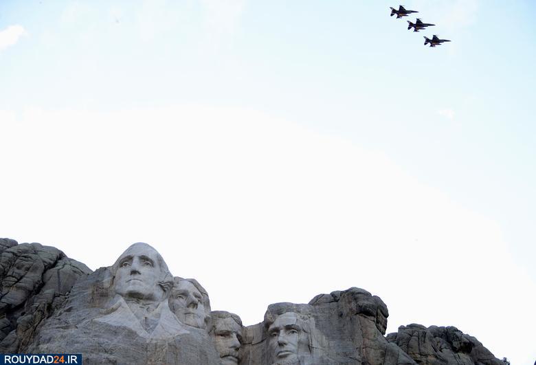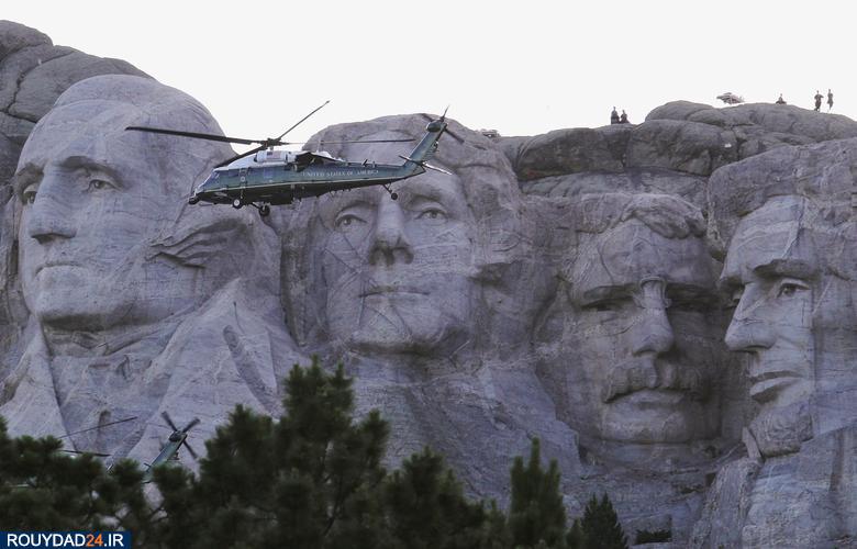چهره چهار تن از مشهورترین رئیس جمهوران آمریکا بر روی سنگ کوه در مقیاس بزرگ کنده کاری شدهاست. از راست به چپ: آبراهام لینکلن، تئودور روزولت، توماس جفرسون، و جرج واشینگتن هستند. از میان این چهار چهره توماس جفرسون و جرج واشنگتن دو چهره بردهداری هستند که معترضان مجسمه آنها را به زیر کشیدند. در تصاویر روز عکسهایی از حضور ترامپ در کوه راشمور ببینید.