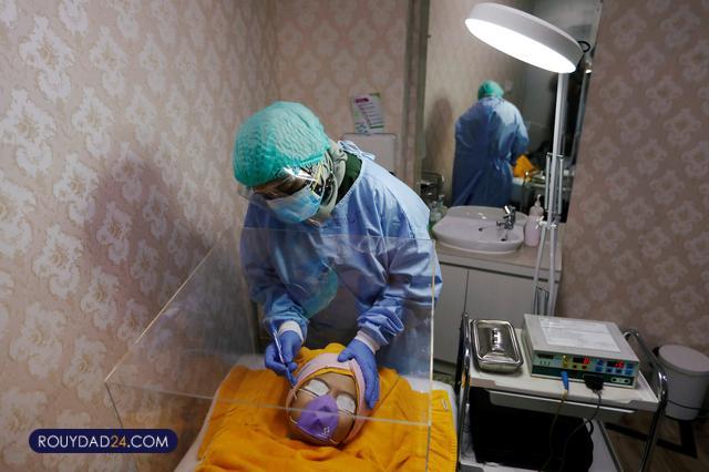 بیماری در کلینیک متخصص پوست با رعایت اصول بهداشتی و استفاده از مینی ماسک برای تسهیل کار پزشک در طول جراحی