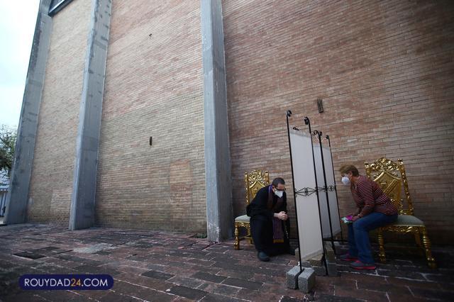 کشیشی در حالیکه ماسک زده است با رعایت فاصله گذاری اجتماعی در خارج از محوطه کلیسای ساگرادا فامیلا در شهر مکزیک در روزهایی که اماکن مذهبی بتدریج بازگشایی می شوند