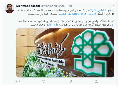 پس از قطعی شدن ریاست بذرپاش بر دیوان محاسبات، حالا انتخاب «زاکانی» به عنوان رئیس مرکز پژوهشهای مجلس با واکنش کاربران شبکههای اجتماعی مواجه شد.