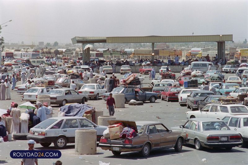 تاریخ 17 آگوست 1990, توقف ماشین های سواری و اتوبوس ها در مرز عراق و اردن، در این بین هزاران خارجی هم از جنگ عراق و کویت فرار کرده و در حال خروج از مرز هستند